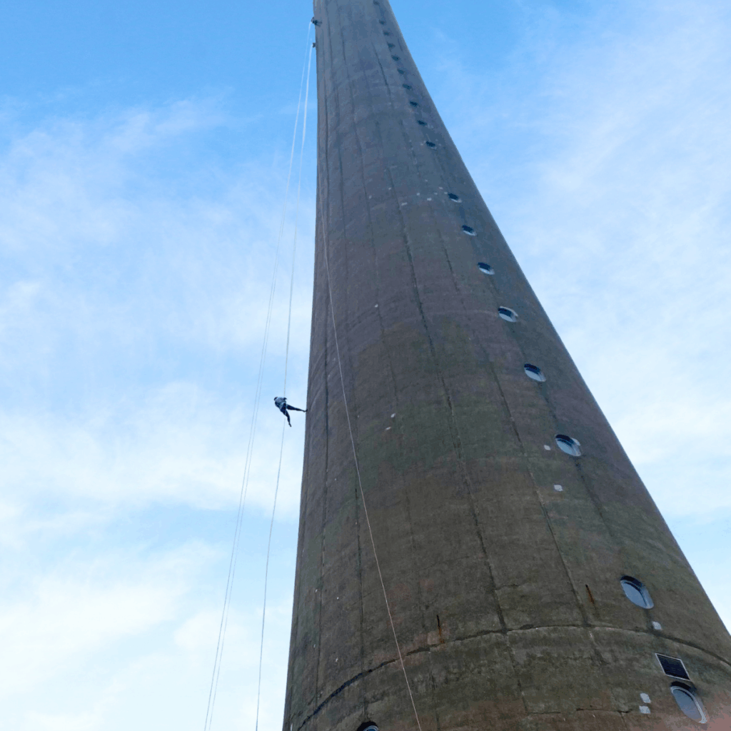 The brave team spent months preparing for the challenge, tackling the full height of the former testing facility, the tallest permanent abseil tower in the UK.